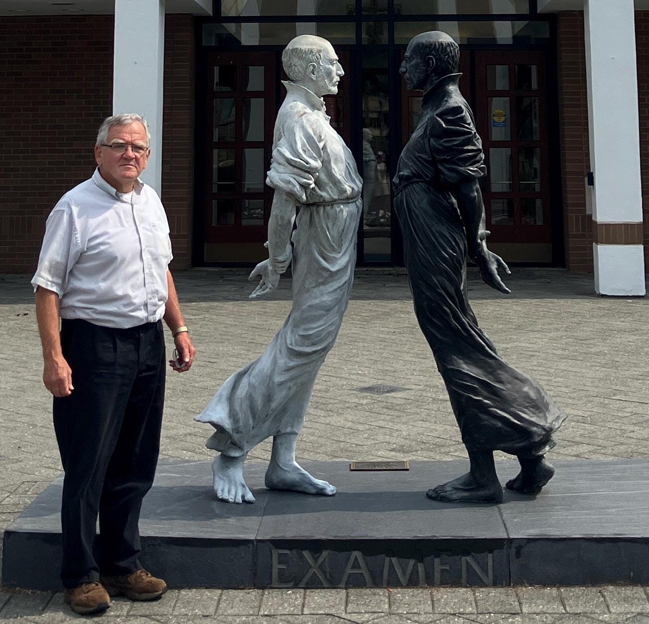This listing is for the 8.5 inch tall table top reproduction of the Fairfield University 'Examen' monument. Shown in foundry cast lost wax bronze with custom patina. Mounted on polished hardwood base with gold filled lettering. The reproduction shown was commissioned by Fairfield as a gift for Pope Francis. Available in 13.5" height and 8.5" height, this sculpture is available in a variety of configurations and prices points, including bonded, or cold-cast bronze.